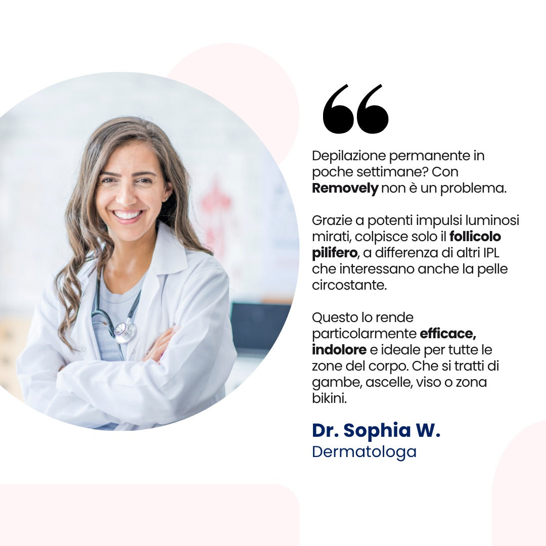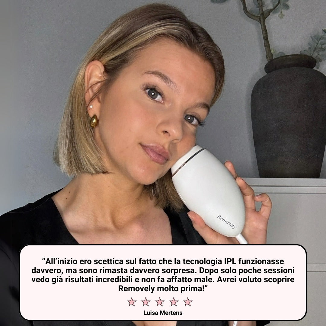 Sì, la tecnologia IPL è clinicamente testata e comprovata. Gli IPL Removely sono progettati per essere sicuri ed efficaci se usati secondo le istruzioni. Per una maggiore sicurezza, il dispositivo è stato controllato da esperti.
